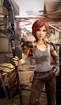 Sintel et Scales sur son épaule. Couverture nue du magazine 3D World.