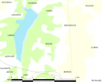 La commune de Sinzos se trouve dans le département des Hautes-Pyrénées, en région Occitanie[I 1].