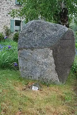 - ↑ Menhir trouvé près du moulin de Farret et ayant servi de pierre à bâtir.