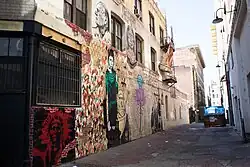 La Skid Row City Limits Mural (en), la peinture murale à l'entrée du quartier, est effectuée par des bénévoles en 2014[38].