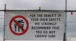 Le slammeur peut se jeter de façon un peu brutale dans la foule et effectuer une mauvaise réception, ce qui risque de blesser les spectateurs censés le rattraper. Il peut aussi mettre quelques coups à ses porteurs.[réf. souhaitée]
