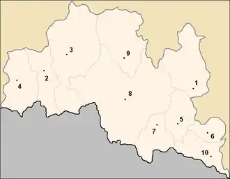 L'oblast regroupe 10 municipalités (en bulgare, община – obchtina – au singulier, Общини – obchtini – au pluriel), au sein desquelles chaque ville et village conserve une personnalité propre, même si une intercommunalité semble avoir existé dès le milieu du XIXe siècle :