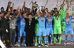 - ↑ Vincent Bregevin, « Naples, champion d'Italie, baigne dans l'extase : "Gagner de nouveau, et la Ligue des champions !" », sur www.eurosport.com (consulté le )