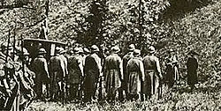 - Le , le général René Boutegourd ordonne, sans jugement, l’exécution « pour l’exemple » de sept soldats du 327e régiment d’infanterie[16].