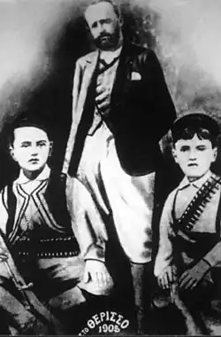 Sophoklis avec son père Elefthérios et son frère Kyriakos en 1905, lors de la révolte de Thérissos.