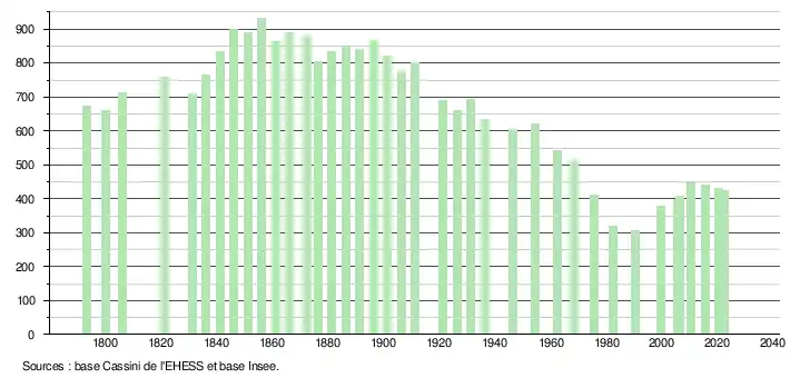 - ↑ Fiches Insee - Populations de référence de la commune pour les années 2006, 2007, 2008, 2009, 2010, 2011, 2012, 2013, 2014, 2015, 2016, 2017, 2018, 2019, 2020, 2021 et 2022.
