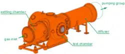 - la chambre de stabilisation équipée d'un cône brise-jet : longueur de 2,6 m, diamètre interne de 1,2 m.