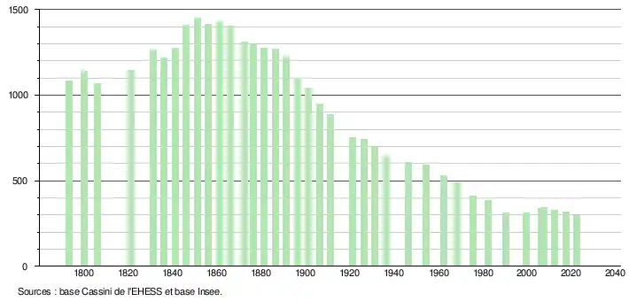 - ↑ Fiches Insee - Populations de référence de la commune pour les années 2006, 2007, 2008, 2009, 2010, 2011, 2012, 2013, 2014, 2015, 2016, 2017, 2018, 2019, 2020, 2021 et 2022.