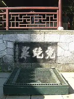 L'eau de la source elle-même s'échappe du quartzite et est considérée comme l'une des plus belles de Chine[1]. L'eau est populaire pour infuser des thés, comme la spécialité locale, le thé Long Jing.