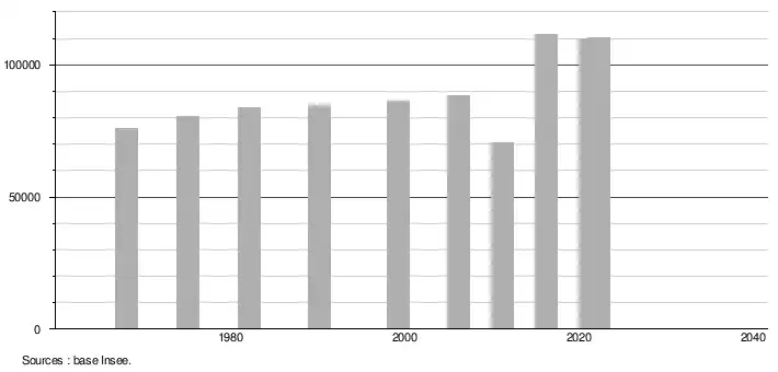 - ↑ Population municipale de référence en vigueur au 1er janvier 2025, millésimée 2022, définie dans les limites territoriales en vigueur au 1er janvier 2024, date de référence statistique : 1er janvier 2022.