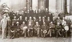 troisième rang — Hon. E. H. Walton; Hon. Col. E. M. Greene.; Mr. Hercules Christiaan van Heerden; Dr J. H. M. Beck; Mr. G. H. Maasdorp; Mr. H. L. Lindsay; Hon. François Stephanus Malan; Gen. Schalk Willem Burger; Hon. Dr. Thomas Smartt; Hon. Gen. Christiaan de Wet; Rt. Hon. Dr. Leander S. Jameson; Hon. H. C. Hull; Hon. Gen. James Barry Hertzog; Mr. E. F. Kilpin.
