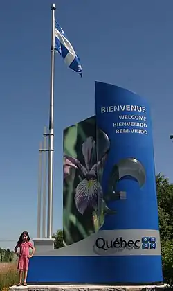 Enseigne de bienvenue située à la frontière entre le Québec et les États-Unis.