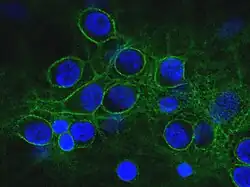 La spectrine est un tétramère constitué de deux sous-unités nommées respectivement α et β, qui fixent les filaments d'actine du cytosquelette à la membrane plasmique par des protéines intrinsèques à cette dernière. Elle a un rôle de stabilité mécanique.