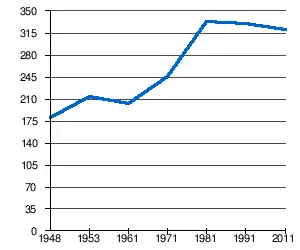 - 1 2 (sq) « Évolution de la population 1948-2011 », sur pop-stat.mashke.org (consulté le ).