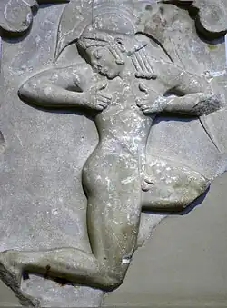 La pièce est essentielle dans l'étude du développement de l'art attique. Il est frappant de voir comment le motif s'emboîte ici dans la forme de la pierre, se modelant l'un à l'autre. Les contorsions du corps sont également une nouveauté pour cette époque, marquant la transition entre la rigidité du style archaïque et un art classique beaucoup plus dynamique.
