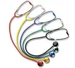 Le stéthoscope est utilisé par les professionnels de santé afin d'écouter les battements cardiaques, le murmure respiratoire, le thrill artériel, les bruits abdominaux ou fœtaux, ou encore utilisé lors de la prise de la tension artérielle.
