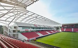 Inaugurée le [4], la première tribune à sortir de terre est celle du côté nord avec une capacité de 5 530 places :