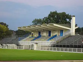 Le projet de construction du stade commence en 1941-1942 ; les travaux ont lieu après-guerre. Les tribunes sont construites en 1949[2],[3],[4].
