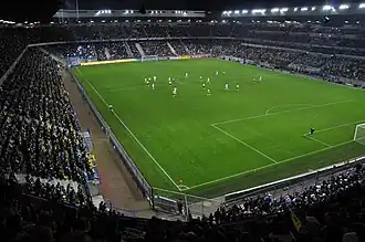 Cependant le stade n'a pas été conçu pour pouvoir être agrandi autrement que par l'ajout de places « debout »[64], qui sont aujourd'hui interdites en Ligue 1, ce qui empêche tout projet d'agrandissement du stade.