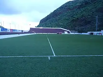 La surface du terrain est en terre et ce jusqu'en 1994, année au cours de laquelle est installée une pelouse.