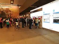 Les œuvres d'art de la station consistent en une série de murales interactives sans titres réalisées par Andrew Morrow illustrant des moments de l'histoire canadienne[3],[10].