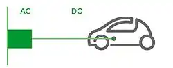 Pour la charge normale (kW), les constructeurs automobiles ont intégré un chargeur de batterie à la voiture. Un câble de recharge permet de le brancher sur le réseau électrique pour l'alimenter en courant alternatif 230 volts. Pour la charge plus rapide (22 kW, voire 43 kW et plus), les constructeurs ont retenu deux solutions :