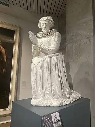 Il s’agit d’une statue funéraire en marbre blanc, grandeur nature, qui mesure 138 cm de hauteur pour 60 cm de largeur et pèse 107 kg. Elle est exécutée à l’aide de la technique de la taille directe, et a été réalisée dans le premier quart du XVIIe siècle par Nicolas Guillain. La défunte est représentée agenouillée avec les mains jointes, en position de prière. Ses vêtements correspondent à la tenue classique des bourgeois du XVIIe siècle soit une grande jupe habillée de nombreux drapés, un corset resserré à la taille ainsi qu’une fraise tuyautée enserrant son cou.