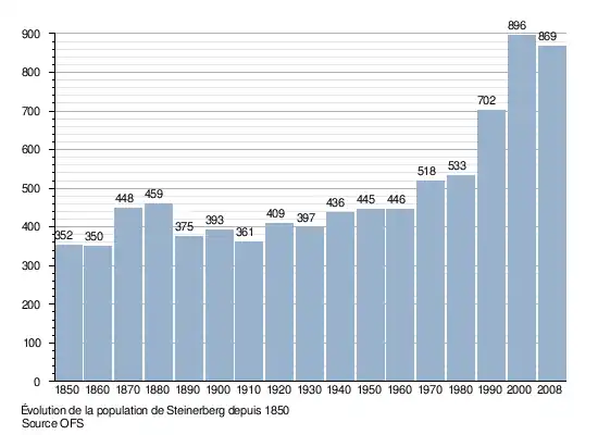 Le graphique suivant résume l'évolution de la population de Steinerberg entre 1850 et 2008[3] :