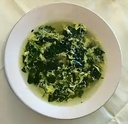 - ↑ Lehrer, « Ragged Egg and Spinach Soup », SplendidTable.org (consulté le ).