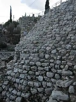 - ↑ (en) Eilat Mazar, « The Stepped Stone Structure », dans Eilat Mazar, The Summit of the City of David, Excavations 2005-2008: Final Reports Volume I. Area G, Shoham Academic Research and Publication, , 169–188 p. (ISBN 978-965-7726-00-6)