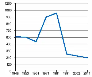 - 1 2 (sr + en) « Livre 20 : Vue d'ensemble comparative de la population en 1948, 1953, 1961, 1971, 1981, 1991, 2002 et 2011, données par localités) » [PDF], pages du recensement de 2011 en Serbie - Institut de statistique de la république de Serbie, (consulté le )