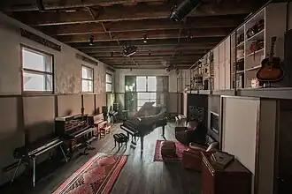 Le studio dispose d'une importante collection d'instruments de musique incluant un piano à queue Fazioli, un piano droit Steinway, de nombreux claviers, un choix de batteries modernes et vintage, et des guitares de référence dont une Gibson J-45.