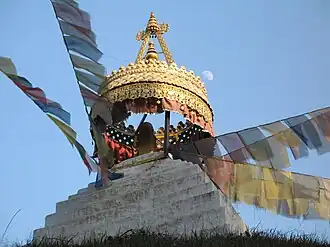 Contrairement à la tradition architecturale bouddhiste les quatre stupas sont de forme circulaire. Ils contiendraient des reliques du Bouddha, Comme aucune excavation archéologique ne peut être faite il est impossible de vérifier ce qu’il en est. Entourés à leur base d’une couronne de moulins à prière les stupas sont l’objet de grande dévotion populaire. À proximité de chaque stupa se trouve une petite terrasse couverte permettant aux pèlerins d’y passer la nuit.