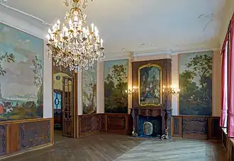 De nombreuses pièces se situent également dans le palais des princes-évêques et l'actuel palais de l'évêque de Liège, la résidence des abbés de l'abbaye de Saint-Trond, les hôtels de ville de Liège, Aix-la-Chapelle, Maastricht, Tongres et Saint-Trond, et d'innombrables monastères, châteaux et manoirs de la région qui donnent une impression d'opulence et de richesse dans la principauté de Liège au XVIIIe siècle. L'hôtel de Grady (ou hôtel de Spirlet) et l'hôtel Vander Maesen à Liège, le château de Modave, le château de Deulin, le château de Eijsden, le château de Hillenraad et le presbytère de Zutendaal sont des exemples de maisons et châteaux privés possédant une riche collection de décoration intérieure de style Liège-Aix.