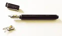 Différents modèles de stylos sont adaptés aux différents usages et utilisateurs, scolaires ou professionnels. Certains utilisent des cartouches pré-remplies, d'autres un réservoir à remplir manuellement. Des attaches permettaient aux pointes de s'adapter à des compas pour tracer des cercles.