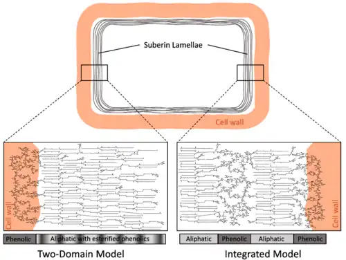 - ↑ (en) Kathlyn N. Woolfson, Mina Esfandiari, Mark A. Bernards, « Suberin Biosynthesis, Assembly, and Regulation », Plants, vol. 11, no 4, , p. 555 (DOI 10.3390/plants11040555)