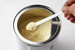 Les fabricants déclarent que les préparations pour nourrissons sont conçues pour s'inspirer approximativement du lait de la mère environ un à trois mois après l'accouchement ; cependant, il existe des différences significatives dans la teneur en nutriments de ces produits[2]. Les préparations pour nourrissons les plus couramment utilisées contiennent du lait de vache purifié[3],[4], du lactosérum et de la caséine comme source de protéines, un mélange d'huiles végétales comme source de matières grasses, du lactose comme source d'hydrates de carbone, un mélange de vitamines et de minéraux, et d'autres ingrédients selon le fabricant[5]. Les préparations modernes pour nourrissons contiennent également des oligosaccharides du lait maternel, qui sont bénéfiques pour le développement immunitaire et un microbiote intestinal sain chez les nourrissons[6]. En outre, il existe des préparations pour nourrissons qui utilisent le soja comme source de protéines au lieu du lait de vache (principalement aux États-Unis et au Royaume-Uni) et des préparations qui utilisent des protéines hydrolysées en leurs acides aminés constitutifs pour les nourrissons qui sont allergiques à d'autres protéines. L'augmentation de l'allaitement maternel dans de nombreux pays s'est accompagnée d'un recul de l'âge moyen d'introduction des préparations pour nourrissons (y compris le lait de vache), entraînant à la fois une augmentation de l'allaitement maternel et une augmentation de l'utilisation des préparations pour nourrissons entre 3 et 12 mois[7],[8],[9].
