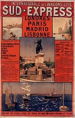 Le Sud-Express a d'abord été lancé sous la forme d'un train de luxe à l'initiative commune du PO, du Midi et de la CIWL, et inauguré le [3] entre Paris et Hendaye (départ) ou Irun (arrivée). De là, les voyageurs empruntaient les trains ordinaires du réseau espagnol leur offrant une correspondance de/ou pour Lisbonne, Porto ou Madrid.