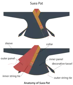 Le suea pat est une sorte de chemise à manches longues sans boutons. On la porte en enroulant le côté droit avant de la chemise sur le côté gauche avant, et les deux pans sont attachés ensemble par des ficelles.