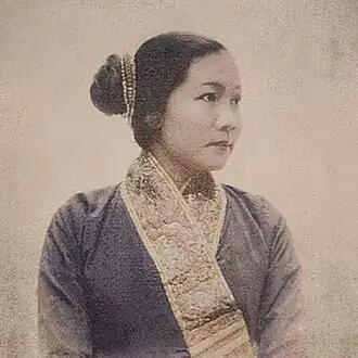 Miss Songkran avec un suea pat recouvert d'un pha biang, une sorte de longue écharpe