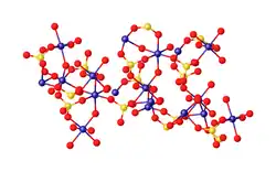 Structure du Cr(SO4)(H2O)(OH), montrant la sphère de coordination CrO6 typique de nombreux composés de chrome(III).