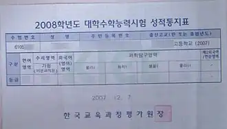 - ↑ ko:대학수학능력시험#.EB.8C.80.ED.95.99.EC.88.98.ED.95.99.EB.8A.A5.EB.A0.A5.EC.8B.9C.ED.97.98 .EB.AA.A8.EC.9D.98.ED.8F.89.EA.B0.80