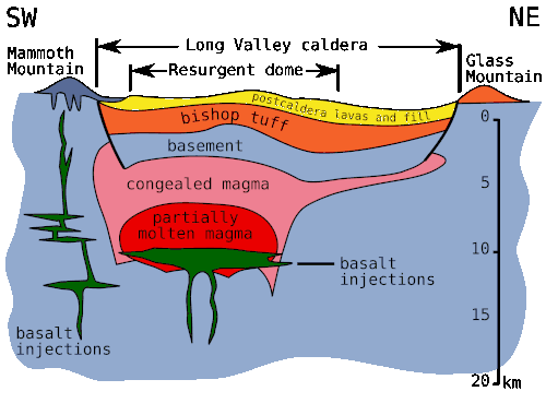 Coupe transversale du supervolcan de la caldeira de Long Valley.