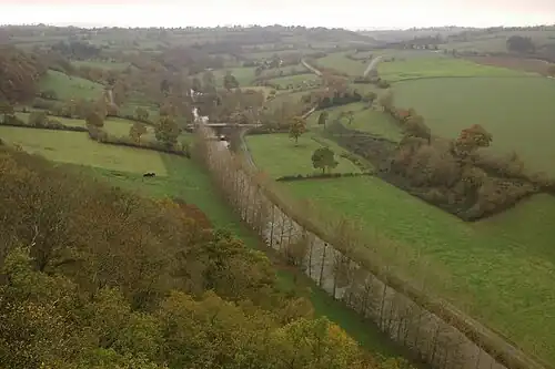 - l'amélioration de la rétention, épuration et infiltration de l'eau dans les sols, et donc au bon état écologique des bassins versants (grâce aux bandes enherbées notamment). Les mares, fossés et bandes enherbées, ainsi que les talus perpendiculaires au sens de la pente jouent un rôle tampon[8] important (« étalement des crues »), limitant à la fois les sécheresses (par meilleure infiltration de l'eau, dès le haut du bassin versant) et les inondations (réduction du nombre et de l'intensité des crues).