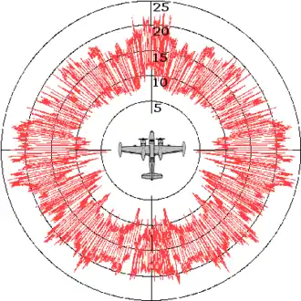 Le diagramme illustrant le présent article est dérivé d’un diagramme publié par M. I. Skolnik (voir bibliographie) représentant la SER σ/σ0 mesurée de manière expérimentale sur le bombardier B-26 Invader pour une fréquence de 3 GHz.