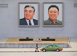 - ↑ (en) Oliver Hotham, « Portraits to inspire and intimidate: North Korea's omnipresent leaders », The Guardian, (consulté le )