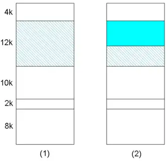 Les systèmes paginés rencontrent un problème de fragmentation interne : de la place est perdue à la fin d'une page. Les systèmes segmentés connaissent un problème de fragmentation externe : des espaces entre des segments sont trop petits pour loger de nouveaux fragments, cet espace est donc perdu.