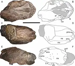 ). - ↑ (en) Eva-Maria Bendel, Christian F. Kammerer, Nikolay Kardjilov, Vincent Fernandez et Jörg Fröbisch, « Cranial anatomy of the gorgonopsian Cynariops robustus based on CT-reconstruction », PLOS ONE, vol. 13, no 11, , e0207367 (PMID 30485338, PMCID 6261584, DOI 10.1371/journal.pone.0207367