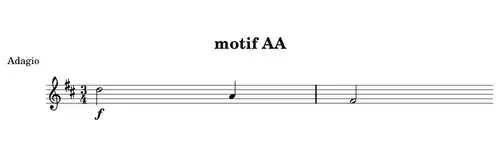 Après l’unisson initial de tout l’orchestre, le motif AA est immédiatement renversé et diminué aux premiers violons. La mélodie prend ensuite un tour gracieux puis c’est la réexposition, cette fois en mineur (mesure 7). Il y a alors un détail dynamique intéressant: les hautbois jouent, en plein tutti, la note pédale ré piano, puis crescendo. Ici la solitude du hautbois, conforme à son caractère pastoral, présage du rôle important qu’il sera appelé à jouer quelques mesures plus loin à la fin de l’introduction. Le passage au mode mineur est l’occasion d’entendre les douces harmonies du second degré mineur et de la sixte napolitaine. La pédale du hautbois est reprise par les cors, cette fois à la dominante (mesure 12), puis par les cordes. À la fin, la mélodie plaintive du hautbois n’est autre que la transposition et diminution du motif récurrent AA, et sa variation menant au point d’orgue.