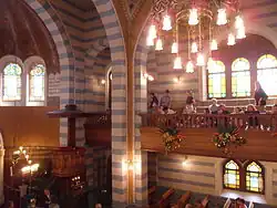 Par incidence, l'aménagement intérieur de la synagogue est aussi totalement revu. La bimah initialement prévue au centre de la salle et l'arche sainte (armoire contenant les rouleaux saints) sont désormais placés dans l'abside, à l'extrémité orientale de l'édifice. Quant aux bancs, ils sont disposés comme dans les églises chrétiennes. Bien sûr, toutes ces modifications assez tardives ont une conséquence majeure : l'adoption du rite réformé.